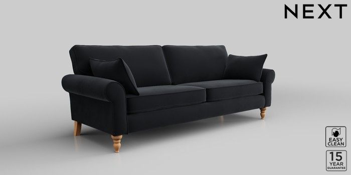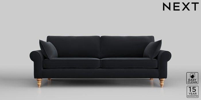 7.2.10 Mallory 3 Seater Sofa Plush Velvet Easy Clean Charcoal Grey High Turned - Light | Made Click here to use our website with more accessibility support, for example screen readers