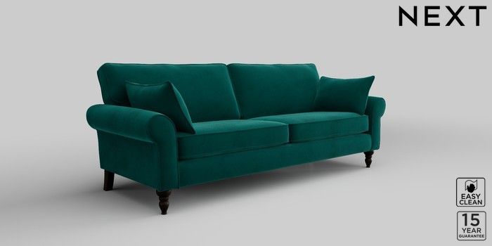 7.2.10 Mallory 3 Seater Sofa Plush Velvet Easy Clean Juniper Green High Turned - Dark | Made Click here to use our website with more accessibility support, for example screen readers