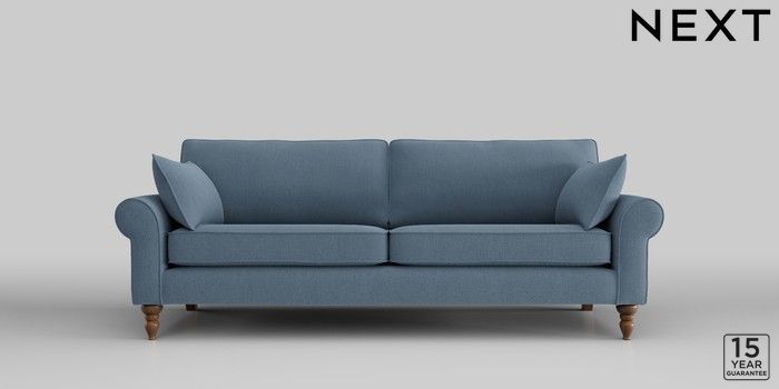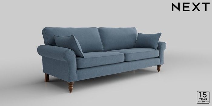 7.2.10 Mallory 3 Seater Sofa Relaxed Linen Look Mid Blue High Turned - Mid | Made Click here to use our website with more accessibility support, for example screen readers