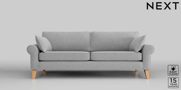 7.2.10 Mallory 3 Seater Sofa Tweedy Blend Easy Clean Light Silver Grey High Tapered - Dark | Made Click here to use our website with more accessibility support, for example screen readers