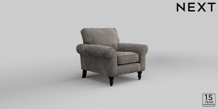 7.2.10 Mallory Armchair Distressed Velour French Grey High Turned - Dark | Made Click here to use our website with more accessibility support, for example screen readers