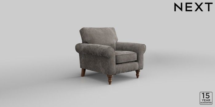 7.2.10 Mallory Armchair Distressed Velour French Grey High Turned - Mid | Made Click here to use our website with more accessibility support, for example screen readers