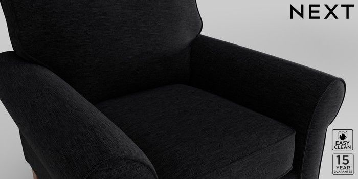 7.2.10 Mallory Armchair Fine Chenille Easy Clean Black High Turned - Light | Made Click here to use our website with more accessibility support, for example screen readers