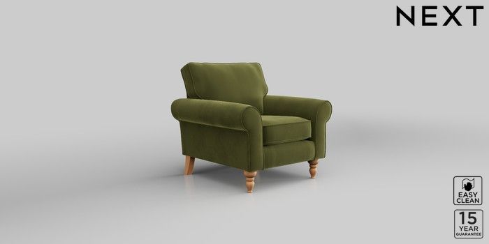 7.2.10 Mallory Armchair Plush Velvet Easy Clean Mid Olive Green High Turned - Light | Made Click here to use our website with more accessibility support, for example screen readers