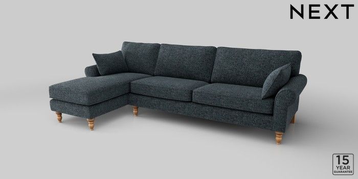 7.2.10 Mallory Medium Sofa Chaise - Left Hand Chunky Chenille Dark Navy Blue High Turned - Light | Made Click here to use our website with more accessibility support, for example screen readers
