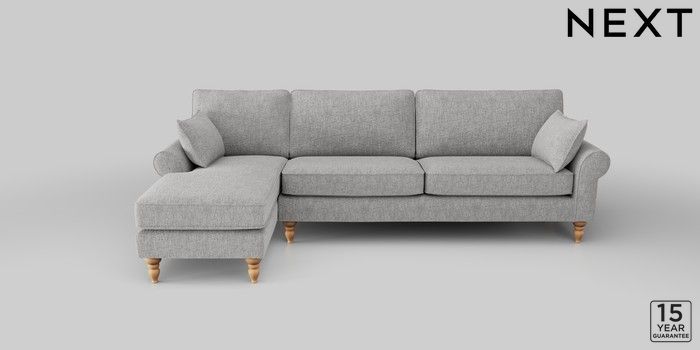 7.2.10 Mallory Medium Sofa Chaise - Left Hand Chunky Chenille Light Grey High Turned - Light | Made Click here to use our website with more accessibility support, for example screen readers