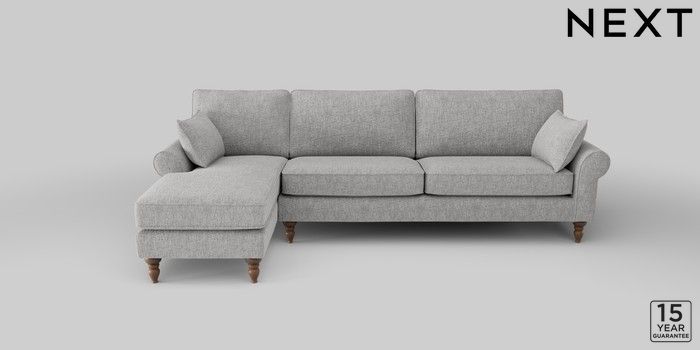 7.2.10 Mallory Medium Sofa Chaise - Left Hand Chunky Chenille Light Grey High Turned - Mid | Made Click here to use our website with more accessibility support, for example screen readers