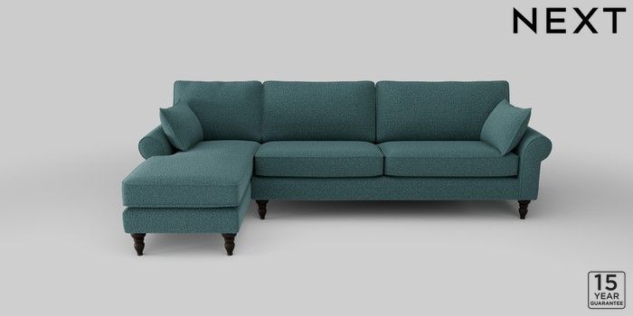 7.2.10 Mallory Medium Sofa Chaise - Left Hand Chunky Chenille Mid Teal Green High Turned - Dark | Made Click here to use our website with more accessibility support, for example screen readers