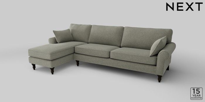 7.2.10 Mallory Medium Sofa Chaise - Left Hand Chunky Marl Light Olive Green High Turned - Dark | Made Click here to use our website with more accessibility support, for example screen readers