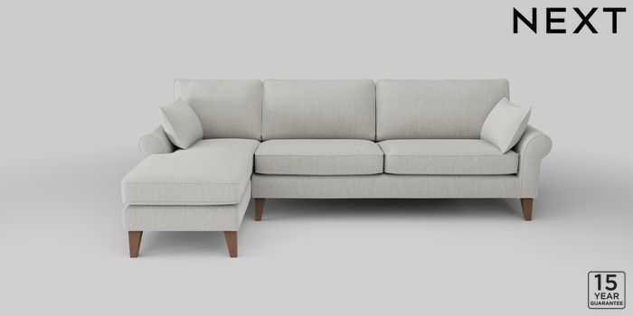 7.2.10 Mallory Medium Sofa Chaise - Left Hand Chunky Texture Dove High Tapered - Mid | Made Click here to use our website with more accessibility support, for example screen readers