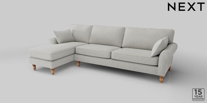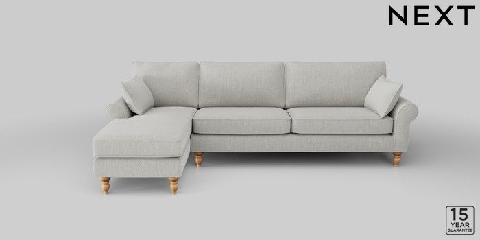 7.2.10 Mallory Medium Sofa Chaise - Left Hand Chunky Texture Dove High Turned - Light | Made Click here to use our website with more accessibility support, for example screen readers