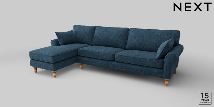 7.2.10 Mallory Medium Sofa Chaise - Left Hand Cotswold Chenille Dark Blue High Turned - Light | Made Click here to use our website with more accessibility support, for example screen readers