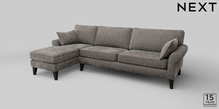 7.2.10 Mallory Medium Sofa Chaise - Left Hand Distressed Velour French Grey High Tapered - Dark | Made Click here to use our website with more accessibility support, for example screen readers