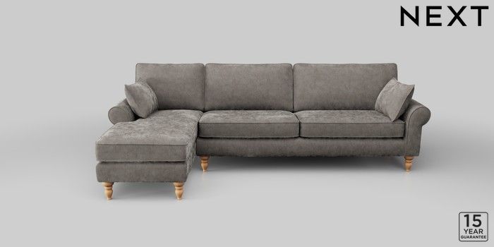 7.2.10 Mallory Medium Sofa Chaise - Left Hand Distressed Velour French Grey High Turned - Light | Made Click here to use our website with more accessibility support, for example screen readers