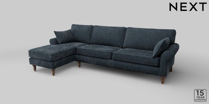 7.2.10 Mallory Medium Sofa Chaise - Left Hand Distressed Velour Midnight Blue High Turned - Mid | Made Click here to use our website with more accessibility support, for example screen readers
