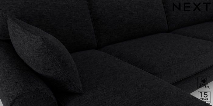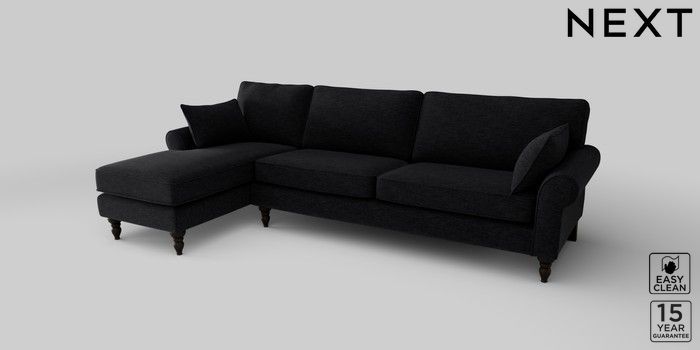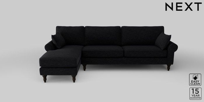 7.2.10 Mallory Medium Sofa Chaise - Left Hand Fine Chenille Easy Clean Black High Turned - Dark | Made Click here to use our website with more accessibility support, for example screen readers