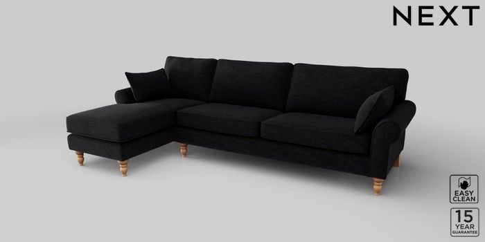 7.2.10 Mallory Medium Sofa Chaise - Left Hand Fine Chenille Easy Clean Black High Turned - Light | Made Click here to use our website with more accessibility support, for example screen readers