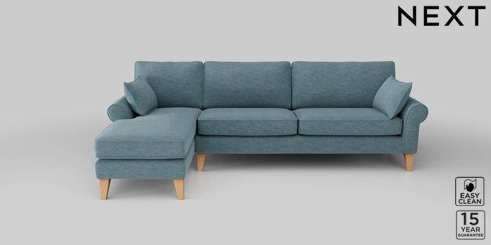 7.2.10 Mallory Medium Sofa Chaise - Left Hand Fine Chenille Easy Clean Mid Blue High Tapered - Light | Made Click here to use our website with more accessibility support, for example screen readers