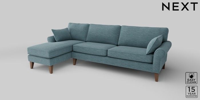 7.2.10 Mallory Medium Sofa Chaise - Left Hand Fine Chenille Easy Clean Mid Blue High Tapered - Mid | Made Click here to use our website with more accessibility support, for example screen readers