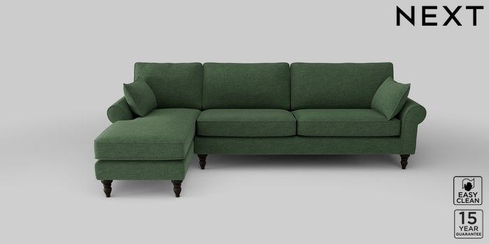 7.2.10 Mallory Medium Sofa Chaise - Left Hand Fine Chenille Easy Clean Mid Khaki Green High Turned - Dark | Made Click here to use our website with more accessibility support, for example screen readers