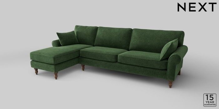 7.2.10 Mallory Medium Sofa Chaise - Left Hand Luxe Chenille Dark Green High Turned - Mid | Made Click here to use our website with more accessibility support, for example screen readers