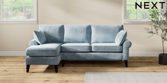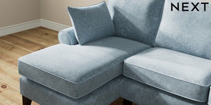 7.2.10 Mallory Medium Sofa Chaise - Left Hand Plush Chenille Light Blue High Tapered - Dark | Made Click here to use our website with more accessibility support, for example screen readers