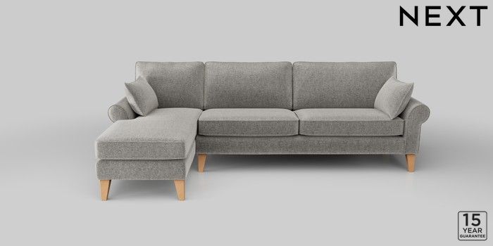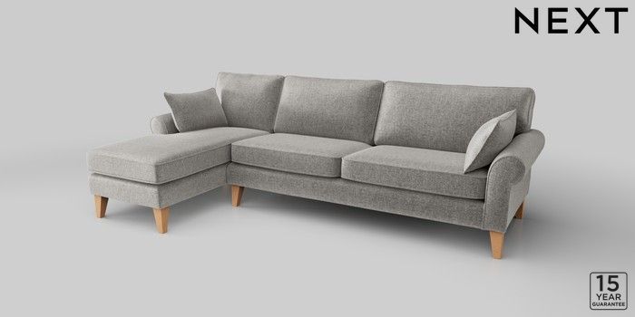 7.2.10 Mallory Medium Sofa Chaise - Left Hand Plush Chenille Light Grey High Tapered - Light | Made Click here to use our website with more accessibility support, for example screen readers