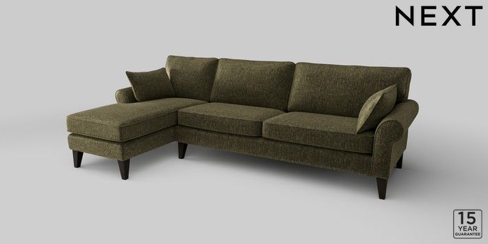 7.2.10 Mallory Medium Sofa Chaise - Left Hand Plush Chenille Moss Green High Tapered - Dark | Made Click here to use our website with more accessibility support, for example screen readers