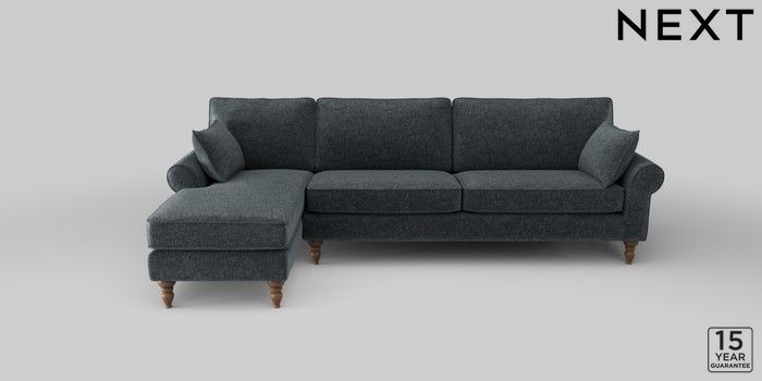 7.2.10 Mallory Medium Sofa Chaise - Left Hand Plush Chenille Slate Blue High Turned - Mid | Made Click here to use our website with more accessibility support, for example screen readers