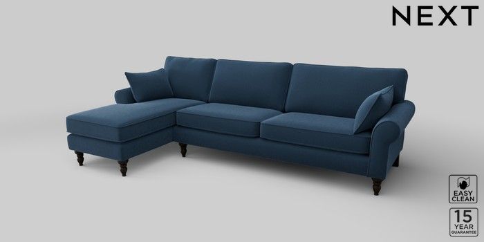 7.2.10 Mallory Medium Sofa Chaise - Left Hand Plush Velvet Easy Clean Airforce Blue High Turned - Dark | Made Click here to use our website with more accessibility support, for example screen readers