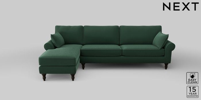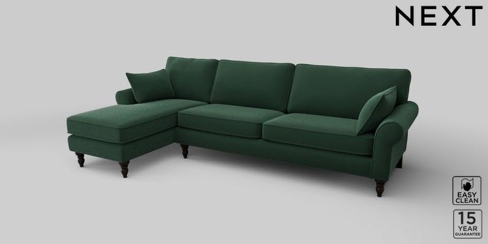 7.2.10 Mallory Medium Sofa Chaise - Left Hand Plush Velvet Easy Clean Bottle Green High Turned - Dark | Made Click here to use our website with more accessibility support, for example screen readers