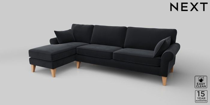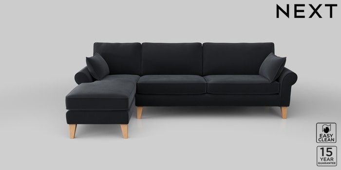 7.2.10 Mallory Medium Sofa Chaise - Left Hand Plush Velvet Easy Clean Charcoal Grey High Tapered - Light | Made Click here to use our website with more accessibility support, for example screen readers