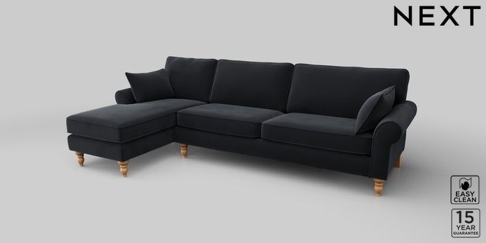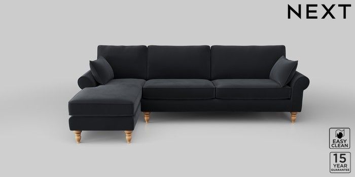 7.2.10 Mallory Medium Sofa Chaise - Left Hand Plush Velvet Easy Clean Charcoal Grey High Turned - Light | Made Click here to use our website with more accessibility support, for example screen readers