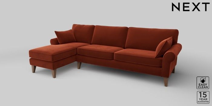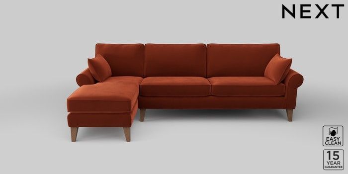 7.2.10 Mallory Medium Sofa Chaise - Left Hand Plush Velvet Easy Clean Ginger Orange High Tapered - Mid | Made Click here to use our website with more accessibility support, for example screen readers