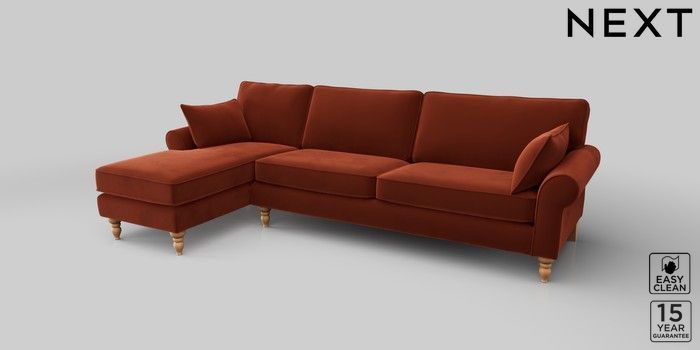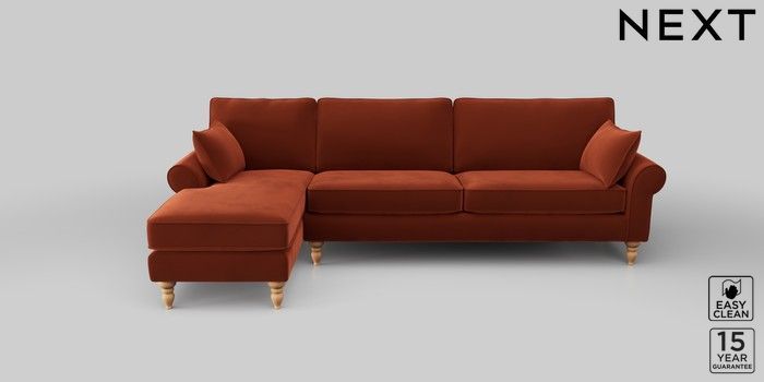 7.2.10 Mallory Medium Sofa Chaise - Left Hand Plush Velvet Easy Clean Ginger Orange High Turned - Light | Made Click here to use our website with more accessibility support, for example screen readers