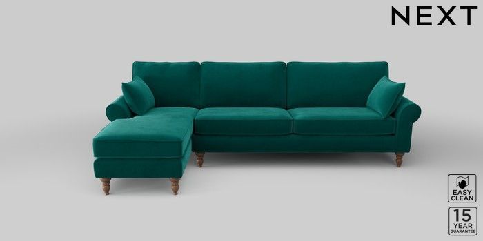 7.2.10 Mallory Medium Sofa Chaise - Left Hand Plush Velvet Easy Clean Juniper Green High Turned - Mid | Made Click here to use our website with more accessibility support, for example screen readers