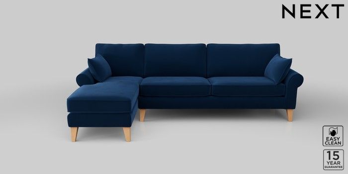 7.2.10 Mallory Medium Sofa Chaise - Left Hand Plush Velvet Easy Clean Navy Blue High Tapered - Light | Made Click here to use our website with more accessibility support, for example screen readers