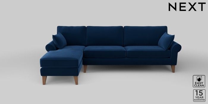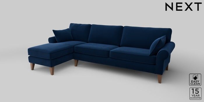 7.2.10 Mallory Medium Sofa Chaise - Left Hand Plush Velvet Easy Clean Navy Blue High Tapered - Mid | Made Click here to use our website with more accessibility support, for example screen readers