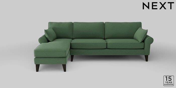 7.2.10 Mallory Medium Sofa Chaise - Left Hand Relaxed Linen Look Dark Green High Tapered - Dark | Made Click here to use our website with more accessibility support, for example screen readers