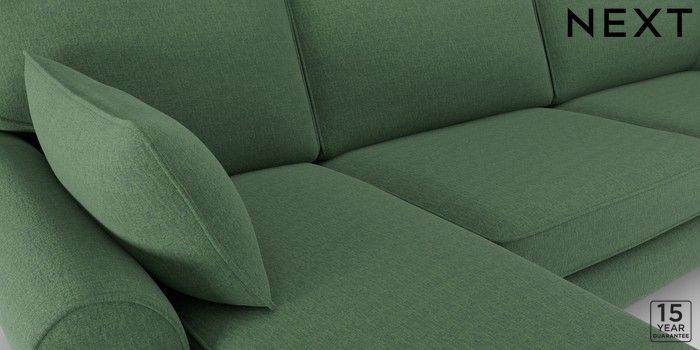 7.2.10 Mallory Medium Sofa Chaise - Left Hand Relaxed Linen Look Dark Green High Turned - Mid | Made Click here to use our website with more accessibility support, for example screen readers
