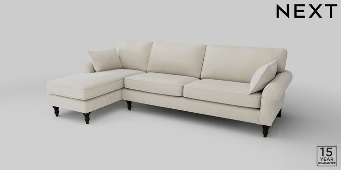 7.2.10 Mallory Medium Sofa Chaise - Left Hand Relaxed Linen Look Oyster High Turned - Dark | Made Click here to use our website with more accessibility support, for example screen readers