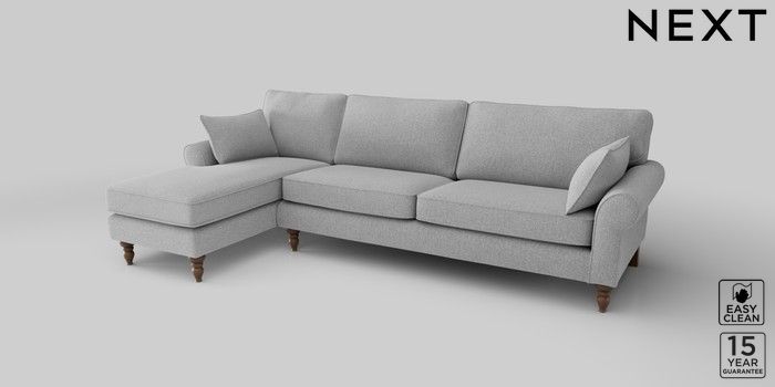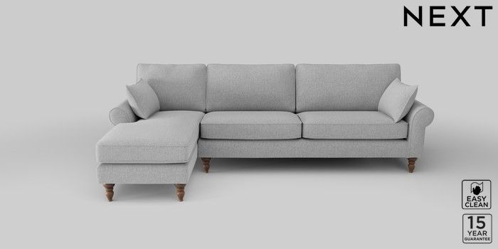 7.2.10 Mallory Medium Sofa Chaise - Left Hand Tweedy Blend Easy Clean Light Silver Grey High Turned - Mid | Made Click here to use our website with more accessibility support, for example screen readers