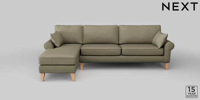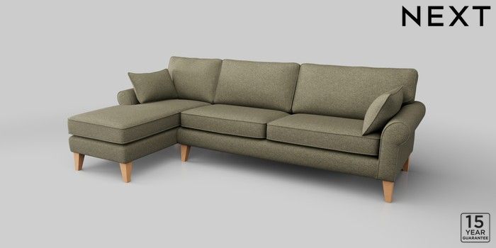 7.2.10 Mallory Medium Sofa Chaise - Left Hand Tweedy Chenille Mid Moss Green High Tapered - Light | Made Click here to use our website with more accessibility support, for example screen readers