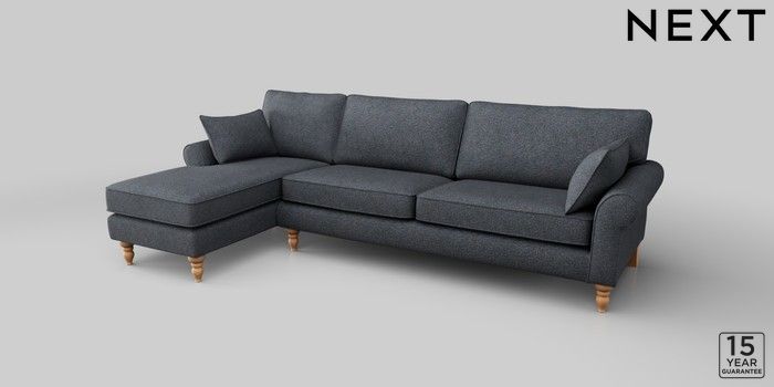 7.2.10 Mallory Medium Sofa Chaise - Left Hand Tweedy Chenille Navy Blue High Turned - Light | Made Click here to use our website with more accessibility support, for example screen readers