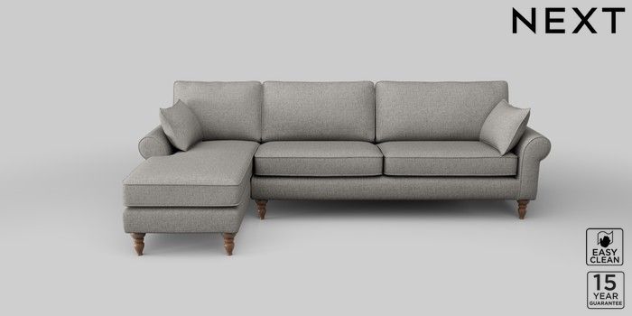 7.2.10 Mallory Medium Sofa Chaise - Left Hand Woven Chenille Easy Clean Light Grey High Turned - Mid | Made Click here to use our website with more accessibility support, for example screen readers