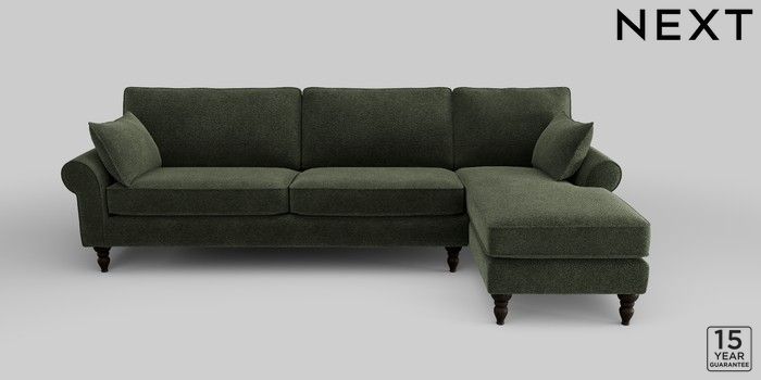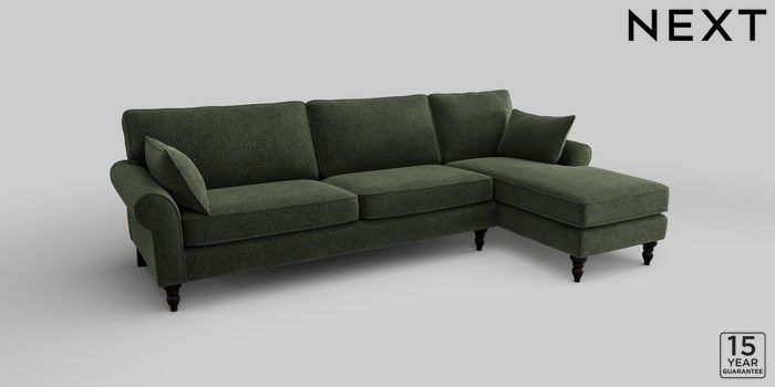 7.2.10 Mallory Medium Sofa Chaise - Right Hand Boucle Chenille Dark Moss Green High Turned - Dark | Made Click here to use our website with more accessibility support, for example screen readers