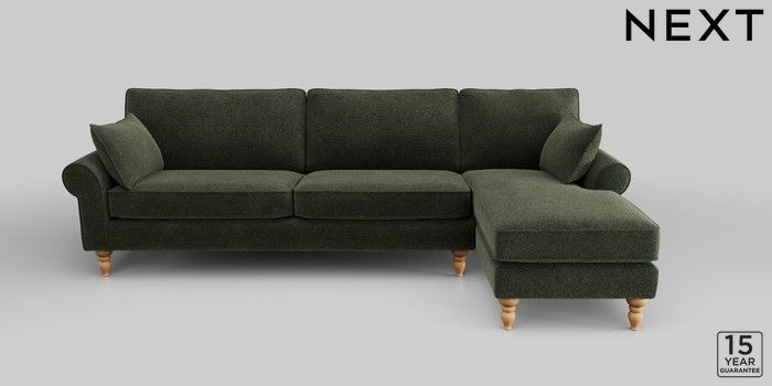 7.2.10 Mallory Medium Sofa Chaise - Right Hand Boucle Chenille Dark Moss Green High Turned - Light | Made Click here to use our website with more accessibility support, for example screen readers