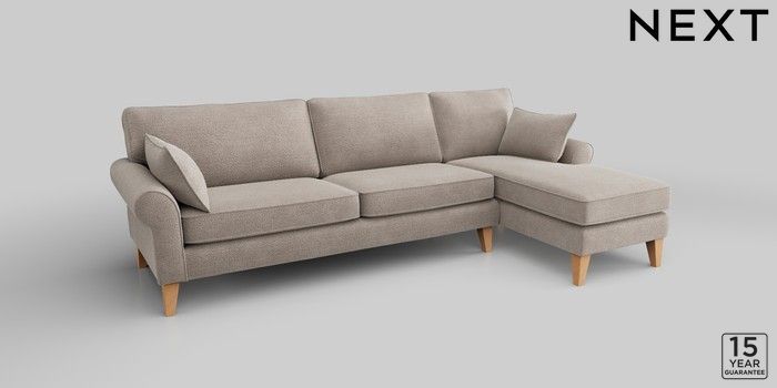 7.2.10 Mallory Medium Sofa Chaise - Right Hand Boucle Chenille Light Natural High Tapered - Light | Made Click here to use our website with more accessibility support, for example screen readers