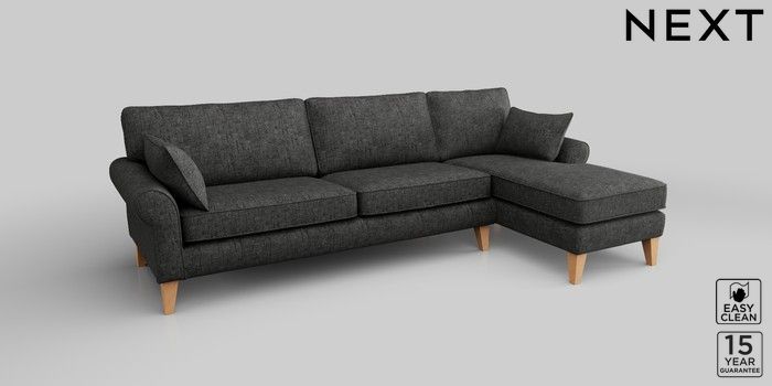 7.2.10 Mallory Medium Sofa Chaise - Right Hand Boucle Weave Easy Clean Charcoal Grey High Tapered - Light | Made Click here to use our website with more accessibility support, for example screen readers