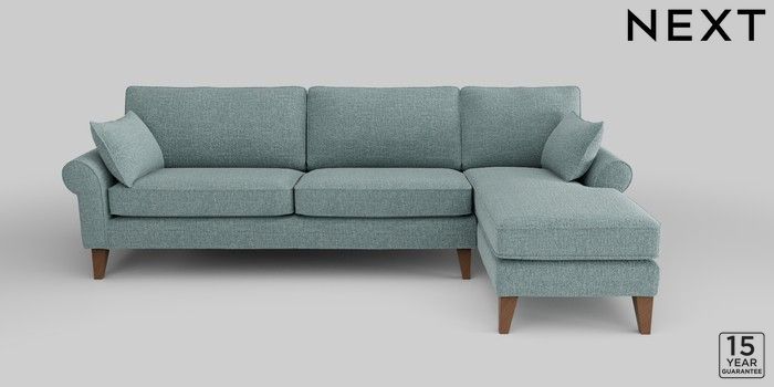 7.2.10 Mallory Medium Sofa Chaise - Right Hand Chunky Chenille Light Teal Green High Tapered - Mid | Made Click here to use our website with more accessibility support, for example screen readers
